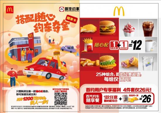 首汽約車相關負責人表示,此次兩個品牌的攜手,不僅給用戶帶來了更多的福利和生活樂趣,引領了新的生活方式,對雙方的營銷也是一次強大的助攻。對于首汽約車來說,麥當勞遍布各個商業中心的門店具有非常大的優勢,能夠為首汽約車帶來更多的新用戶;而對麥當勞來說,通過針對首汽約車用戶推出的隨心配優惠券,能吸引大量首汽約車用戶到店,為麥當勞增加更多客流量。