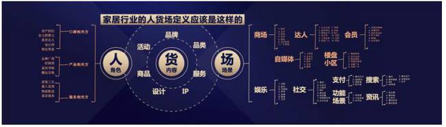 他解釋道,零售行業都講究人、貨、場,但是在家居行業比較特殊,人、貨、場的概括太籠統、簡單。更準確的,應該是角色、場景、內容。家居家裝行業的“角色”太多,涵蓋了品牌商、經銷商,和技術方、內容方、媒體、達人、服務方,以及用戶,“人”的范圍極其廣泛;家居家裝行業的“內容”是“貨”的重要組成部分;而家居家裝行業的“場”,不僅僅是指的賣場,而是包括線上+線下的全場景。