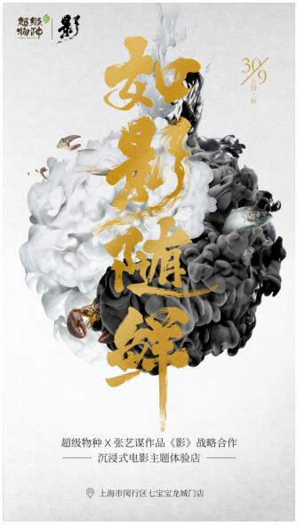 9月27日,在中國著名導演張藝謀年度巨制《影》即將上映之際,超級物種與《影》達成戰略合作,雙方將攜手推出沉浸式電影主題體驗店,共同將電影中極具特色的東方美學視覺盛宴與零售場景進行跨界融合,打造以水墨風格為視覺基調,充滿禪意精神的消費場景體驗,此次合作不僅給用戶帶來全新的內容體驗,也為零售業跨界電影IP帶來全新思路。