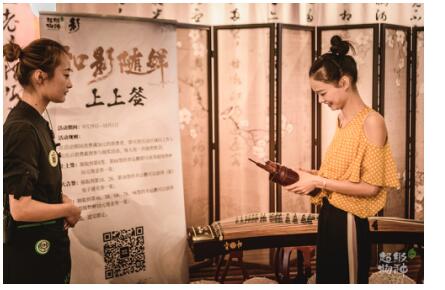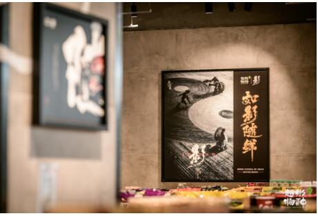門店外墻用“如影隨鮮”的巨幅視覺展示了此次合作主題店的IP特性。進入門店,映入眼簾的是充滿了東方古典韻味的用戶互動區,吊頂以油紙傘進行懸掛點綴,配以水墨畫般的帷幔和極具禪意的古箏、屏風、茶幾、落地燈、燭臺……各種《影》元素的擺件讓超級物種門店古典味道十足。