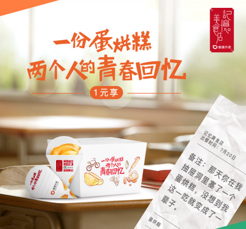 在7月20日-7月22日成都“記憶美食店”活動期間,滴滴外賣還特意在線上和線下共同推出了【一份蛋烘糕,兩個人的青春回憶】主題活動。活動期間,只要成都滴滴外賣開通區(qū)域且商戶所在配送范圍內(nèi),用戶就可以通過APP參加“一元一份(兩個)蛋烘糕”的活動,而如果直接到店的成都市民,無論是持有學(xué)生證、畢業(yè)照、在校期間獲獎獎狀,還是身穿校服,也都可領(lǐng)一張“蛋烘糕兌換券”,免費獲贈1個蛋烘糕。