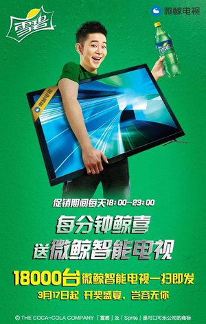 在共享用戶群方面,微鯨與可口可樂合作了“喝小瓶,贏大屏”活動,消費者在購買帶相應標志的雪碧等產品后,掃描瓶身上的二維碼,有機會獲得微鯨電視。無論是微鯨還是可口可樂公司,他們都與家庭娛樂息息相關,正是“同道中人”的互相賞識,使得兩個品牌采用如此有趣的跨界合作方式,將更多的消費者聯系在一起,展開互動娛樂狂歡。