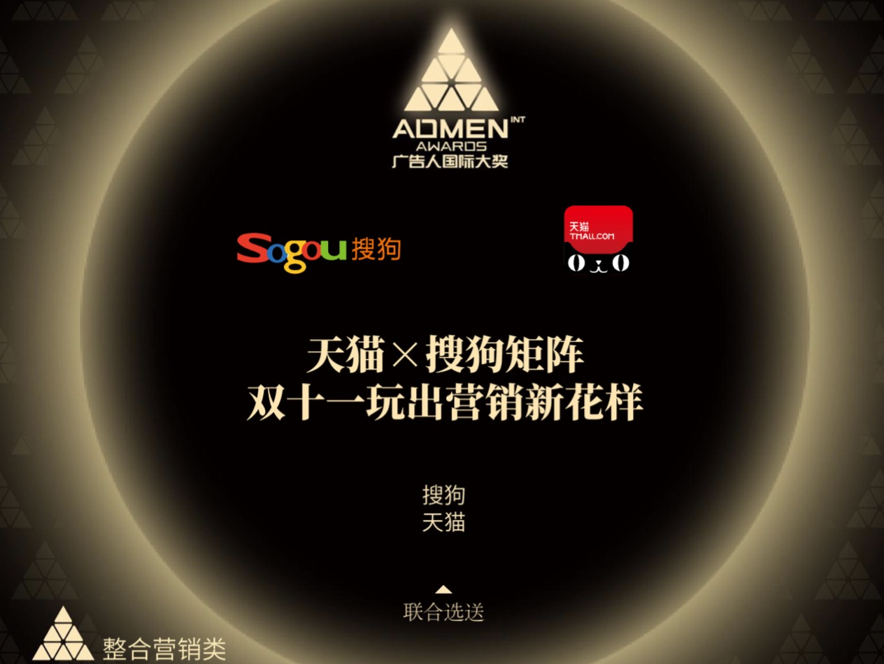 8月5日,以“廣告人·中國智”為主題的“2018ADMEN國際大獎”頒獎盛典在京召開。搜狗遞交的《雙十一案例》憑借超強的商業效果和良好的口碑征服了ADMEN國際大獎的組委會和眾多評委,斬獲“2018ADMEN實戰金案獎”。