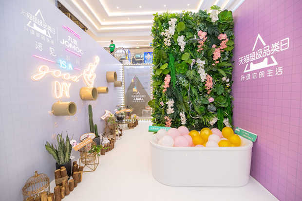 本次活動期間,天貓還聯手花灑行業四大艦長品牌,在居然之家北四環店強勢推出了“浴見理想生活|天貓超級樣板間”。通過打造多個沉浸式電梯間及四大品牌花灑快閃店,天貓讓消費者更直觀地體驗洗澡這件事的未知天地。