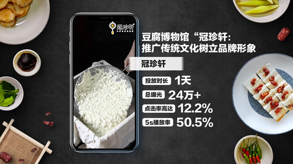 豆腐博物館“冠珍軒”和廈門沁味餐飲通過抖音TopView的線上推廣,在短時間內增大曝光量,通過區域定向推廣輸出品牌形象,快速實現品效協同的推廣效果。
