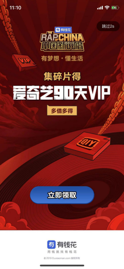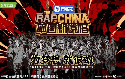 作為獨家冠名商,有錢花全程花式露出,包括視覺化的體現、花式口播、態度解構式植入等等,與《中國新說唱》融為一體。比如某位rapper的支言片語中,流露出對夢想的執著等等,適時呼應著有錢花“為夢想就很敢”的品牌態度。品牌理念與說唱精神融為一體,給觀眾帶來強烈的信息沖擊。