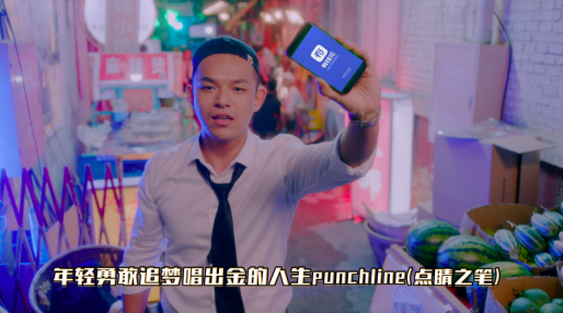 每個rapper都經歷過在夢想和現實之間的掙扎,借此洞察,有錢花也請了節目當紅的兩名選手福克斯、楊和蘇創造了一支中插廣告,把“有態度沒在怕,讓夢想有錢花”的品牌理念以年輕感十足的節奏感唱了出來。