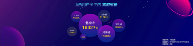 不僅如此,通過今日頭條發(fā)現(xiàn),山西用戶喜愛周邊游,最關(guān)注的旅游省份分別是北京、河南、河北三地。那么山西哪些地方的用戶會更關(guān)注旅游相關(guān)資訊呢?答案是太原、運城、長治,用戶可通過今日頭條、抖音短視頻了解到更多全國新鮮的旅游資訊,為自己未來的出行旅游攻略打下了堅實的基礎(chǔ)。