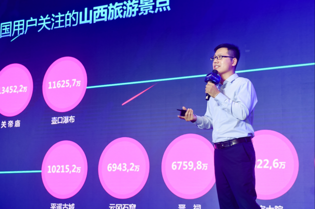 基于巨量引擎旗下的“今日頭條”和“抖音短視頻”兩大平臺,現(xiàn)場從綜合旅游熱度、旅游目的地排名、美食和特產(chǎn)排名等方面,對山西省文化旅游市場進行深入剖析。