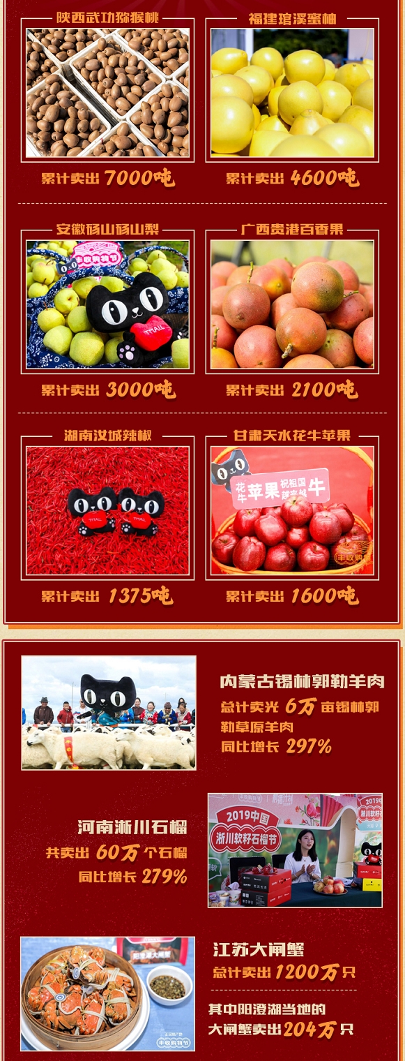 與此同時,8月底至9月末,阿里調動內部10個事業群、聯動21地政府、13個農業協會、23個執行團隊,傾力打造2019“阿里豐收購物節”,這是屬于全國人民的節日。來自全國各地的新鮮時令農產品,才出鄉間,就貼近人們的嘴邊。