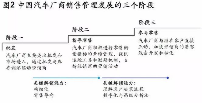 車企與終端消費者的關系有了根本突破,切入消費者的購買決策歷程,開始與經銷商緊密合作,包括開發線索、處理線索和向經銷商移交線索,以及售后服務。