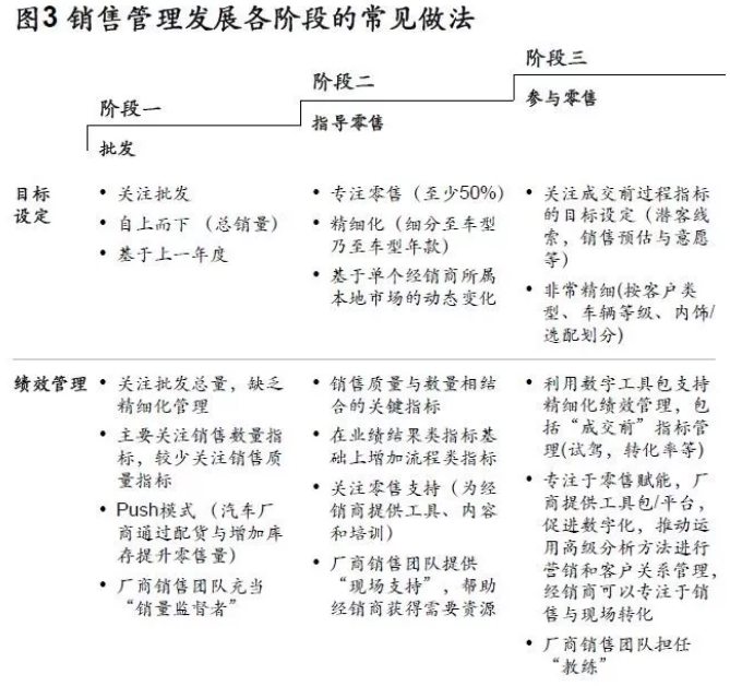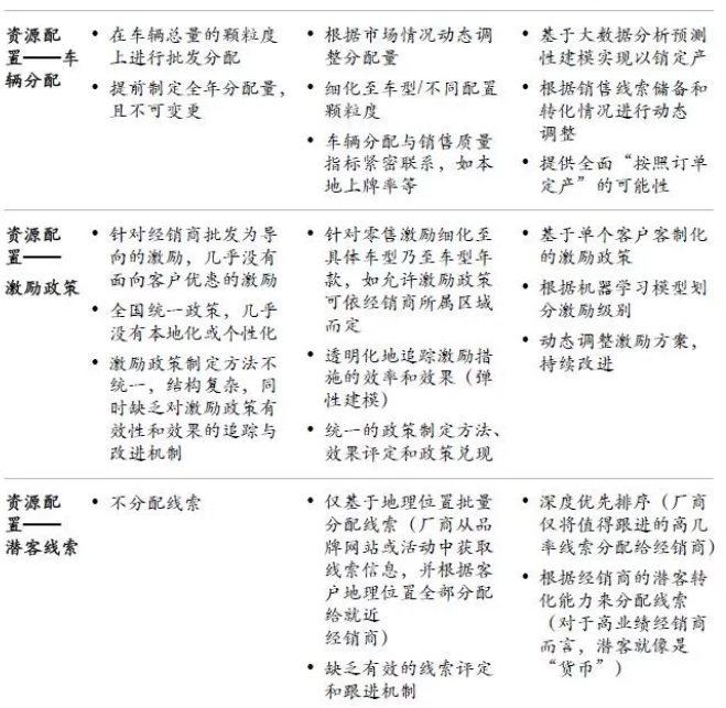 通過管理經銷商(包括零售目標、零售激勵、車輛分配)來提升零售業績,積極為經銷商提供各種工具,如經銷商網絡平臺、客戶關系管理系統、銷售輔導和培訓模塊。但與終端消費者的直接互動仍停留在市場營銷和品牌管理。