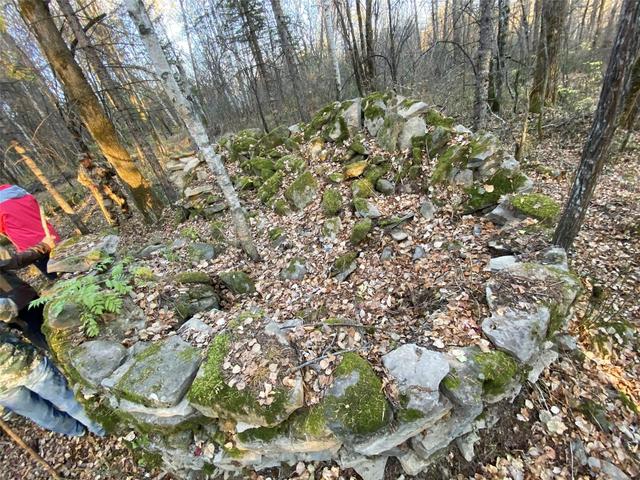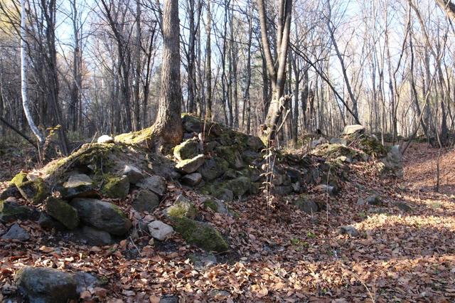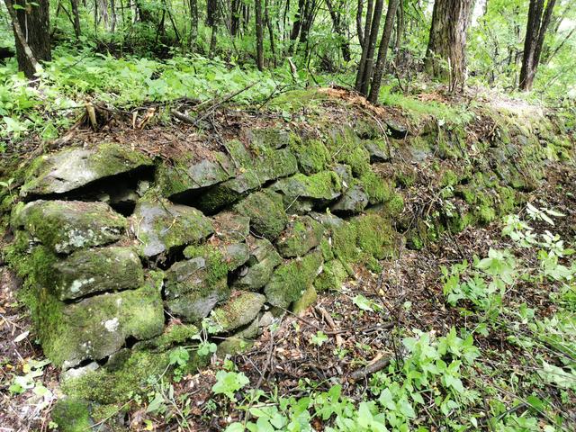 我們順著山路步行一個小時左右,抵達了漫江源頭——老黑河,竟發現逆水而上的漫江在源頭著改了流向奔東去了,同行的本地干部楊來革告訴我們,偽滿地圖標注此地為轉頭山,老黑河轉了一個大圈才向西回到漫江。老黑河東北幾百米的山上就是遺址群,依山而建、與河對望。來到此地,就不難想到《抗日名將王德泰》書中,曾寫到的東北抗日聯軍的著名將領、二軍軍長王德泰曾在老黑河密營中養傷,少年營為其抓蝲蛄補身體,如是此地,這河水距密營也太近了。