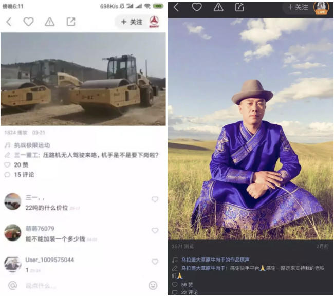 在快手上,用更加直接、真實(shí)的方式和用戶溝通,可能會(huì)產(chǎn)生意想不到的轉(zhuǎn)化效果。例如,賣重型機(jī)械的“三一重工”直播1小時(shí),賣出31臺(tái)壓路機(jī),每臺(tái)售價(jià)35萬(wàn)以上。除此之外,快手上的“烏拉蓋大草原太平哥”通過(guò)每天直播草原上的生活賣牛肉干,他所強(qiáng)調(diào)的詞就是真誠(chéng),優(yōu)質(zhì)的服務(wù)和親民的人設(shè)收獲了老鐵們的信任和持續(xù)的復(fù)購(gòu),他表示:“賣貨只是一個(gè)營(yíng)生,真誠(chéng)、真情才是應(yīng)該堅(jiān)持的,快手上的顧客90%都是回頭客,最多的一位老鐵在一年內(nèi)買了15000元的牛肉干。”通過(guò)短視頻營(yíng)銷與直播,真實(shí)構(gòu)建了“信任”的橋梁,品牌展現(xiàn)了原生態(tài)特質(zhì)能夠獲得良好的成交量。品牌走到真實(shí)、廣泛的用戶群體當(dāng)中,顯然是一個(gè)正確的選擇。