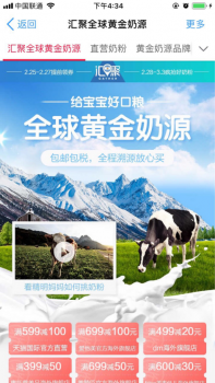 在腦洞大片及H5游戲成功占領媽媽消費者心智后,聚劃算順勢上線“匯聚全球黃金奶源”電商頁面,挑選好了“全球最好的奶粉”,聯合一線奶粉大牌為媽媽們消除“奶粉選擇”的各種疑難雜癥,不再為“明星代言”、“購買渠道”等等標準感到眼花繚亂,只需要記住“會挑的媽媽都選黃金奶源”,媽媽消費者的奶粉購買體驗得到升級。