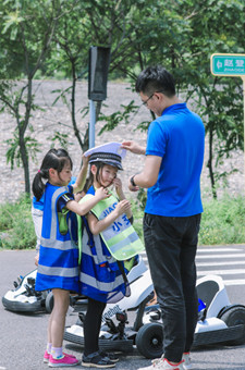 雖然只是短短的一堂課,但是每個細小的流程都經(jīng)過了精心的設置。課程分為實踐理論兩大類,在講解一系列安全知識:SUV的盲區(qū)、內(nèi)輪差、交通手勢等理論后,邀請嘉賓與孩子們分成小組一起比賽、互動,強化印象;最后志愿者和孩子們在北京警察學院進行了實地演練,開上卡丁車來一場交通知識大比拼。