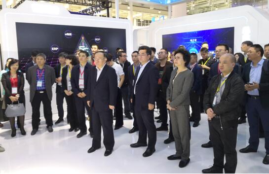 圖二:商務部黨組成員、副部長王炳楠,商務部市場體系建設司副司長鄭書偉在成果展示會現場觀展指導。前排左一:王炳楠。前排左二:鄭書偉。