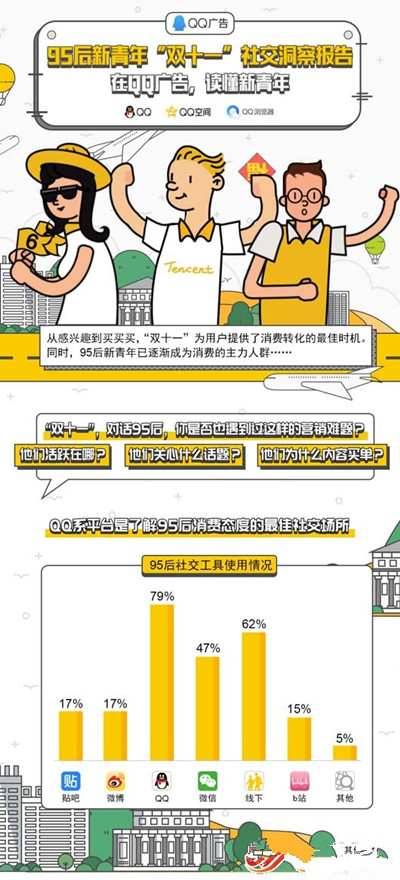 QQ廣告發布了一份有趣的95后新青年“雙十一”社交洞察報告,通過研究QQ平臺上的社交行為數據,讓我們得以更近距離地觀察這批年輕的未來消費主力。