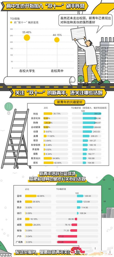 盡管還未正式踏入社會,95后新青年們在今年的“雙十一”剁手大戰中玩兒得不亦樂乎。他們提前一個月就開始在自己的興趣圈子中分享“雙十一”話題,關注秒殺也喜歡搶優惠券,“興趣至上”的生活態度影響著他們的消費觀。??