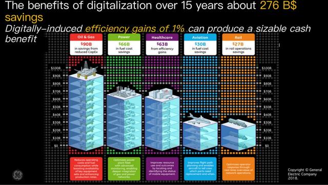 在我們的計算結果中,如果我們在石油、電力、航空、醫療和鐵路五個領域中提升 1% 的效率。那么我們可以在未來15年里總共節省 2760 億美元。