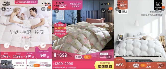活動(dòng)期間天貓還聯(lián)合水星、DOWNLAND、拉芙菲爾三大羽絨被趨勢(shì)代表品牌,以抗菌、控溫、發(fā)熱三大核心升級(jí)趨勢(shì)為例,向消費(fèi)者傳遞出“理想生活,與絨共眠”的重要心智。