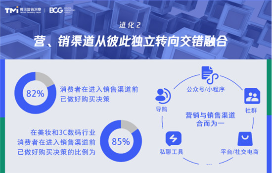 過去企業(yè)傳播信息只能通過間接方式,中間要通過媒介合作方和分銷商等環(huán)節(jié),溝通成本高,且執(zhí)行落地效果常常層層折扣遞減。此外銷售和營銷相互隔絕,這導(dǎo)致營銷資源浪費、投入產(chǎn)出比難以計算等傳統(tǒng)問題。在社交媒體的幫助下,企業(yè)現(xiàn)在擁有直接與消費者互動的能力,傳統(tǒng)意義上的營銷工具例如公眾平臺、小程序、社群等現(xiàn)在都融合了轉(zhuǎn)化銷售的能力,營銷和銷售的分水嶺日漸模糊,不再涇渭分明。調(diào)查顯示,82%的消費者在進(jìn)入銷售渠道前已作好購買決定,在美妝和3C數(shù)碼品類,這種趨勢尤為明顯,該比率高達(dá)85%。