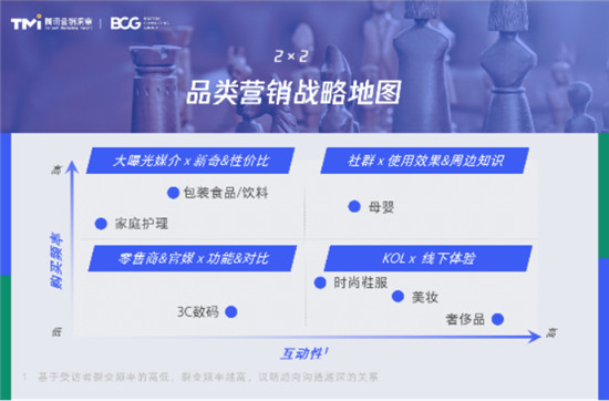 除去5大戰(zhàn)略轉(zhuǎn)變,《白皮書》依據(jù)消費(fèi)者購(gòu)買不同品類的頻率與互動(dòng)性需求,基于騰訊廣告前沿案例庫(kù),構(gòu)建出2×2重點(diǎn)品類營(yíng)銷戰(zhàn)略地圖,為品牌提供具體的策略指引。