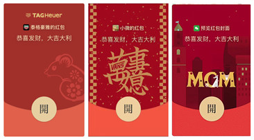 瑞士先鋒制表品牌TAG Heuer泰格豪雅,以AUTAVIA系列鼠年特別版腕表,送出“五谷豐登”味道十足的新春祝福。此外,潮牌Vans的紅包封面借用了中國春聯常用的合體字,把品牌 logo 內嵌入“萬事如意”的祝福語當中;MCM則帶來一只可愛的幾何萌鼠,通過微信紅包封面為用戶傳遞萌趣祝福。