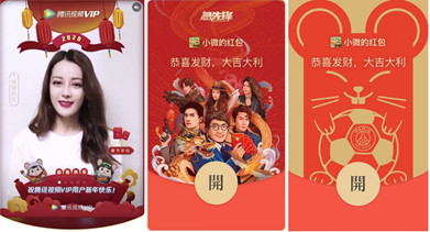騰訊視頻VIP的紅包封面不僅有身穿鼠年盛裝的企鵝,更有春節大劇紅包封面故事,群星視頻拜年送祝福;同時,春節賀歲片也搶占先機,定制專屬春節紅包封面派發影迷。大年初一上映的《急先鋒》,為影迷準備了楊洋、艾倫等主演版春節紅包封面;《巴黎圣日耳曼隊》特意設計了紅金雙色的鼠年紅包封面,分享給喜歡驚險刺激的球迷們。