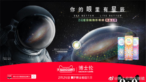 2月24日,百年品牌博士倫攜手全網第一營銷IP天貓超級品牌日,以“你的眼里有星辰”為品牌超級精神,正式開啟隱形眼鏡行業的首個天貓超級品牌日。此次博士倫攜手天貓超級品牌日,通過一系列精心設計的玩法與創新的營銷方式,共同拉開博士倫品牌的開年狂歡序幕。