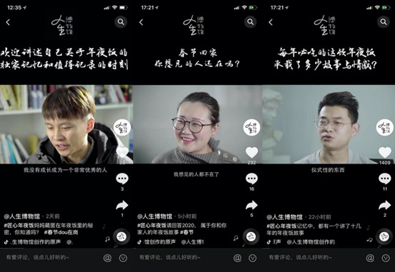 一方面,其在抖音等平臺發起了#如果陌生人請你吃年夜飯#活動,邀請無法回家的異鄉人吃一頓年夜飯,用一餐飯點燃了所有人的情感共鳴。另一方面,聯合抖音平臺“人生博物館”,邀請三位素人講述年夜飯故事,借助短視頻紀錄片的方式強化了大眾的情感共鳴。
