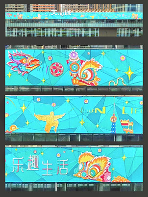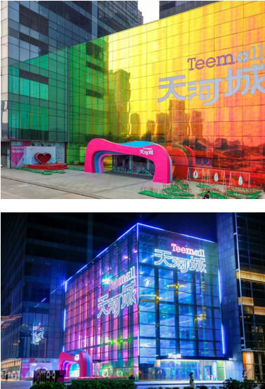 將幻彩薄膜置于天河城的反光玻璃外墻,周邊景色在玻璃的陽光反射下,映出迷幻的色彩。隨著天色的不斷變幻,外墻呈現出千變萬化的魔幻景致,為天河城強勢吸“睛”!
