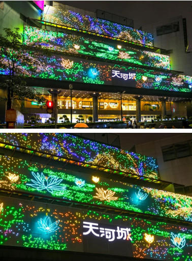 2018年,天河城以「Light up · Life  萬物有光」為主題,以印象派領導人克勞德·莫奈的“花”主題畫進行二次創作,以50米巨型燈飾畫、動態光雕、鐳射互動裝置等燈光藝術再現詩意的“花”世界。