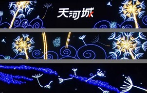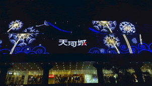 映入眼簾的,是天河城的東、南、西三個大門的門頭燈飾畫描繪了一片蒲公英的海洋。蒲公英輕盈幻化,隨風飄蕩,最終它飄向了歸家的方向,行人至此,感受著天河城散發著的溫暖與愛的氣息,就像回到了家的懷抱中,無與倫比的購物體驗就從這里開始。