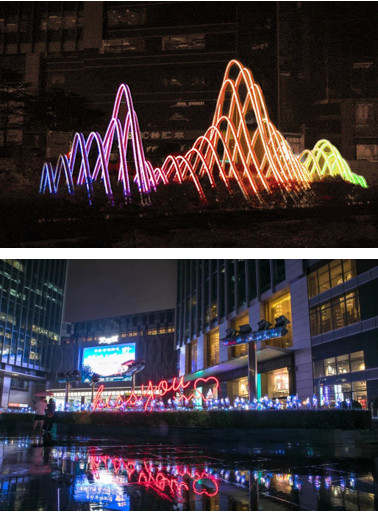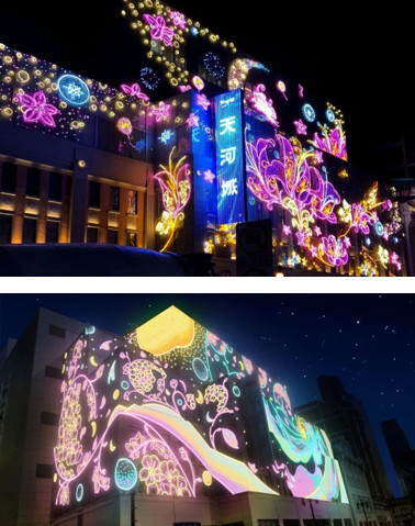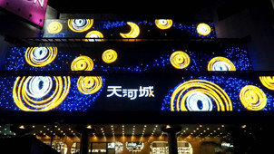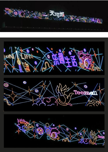 基于地區歷史文化特色、城市特點進行設計、并圍繞商業綜合體整體營銷策劃進行亮化工程的全局把控,2019年9月,南海天河城與夜空彩虹合作,將這里打造成一個“天上街市”!