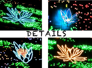 東門及西門以花園中的睡蓮為靈感來源,用3D立體燈光花朵綴滿了整個門頭,燈花如同會呼吸一般,一開一合,充滿靈動感。