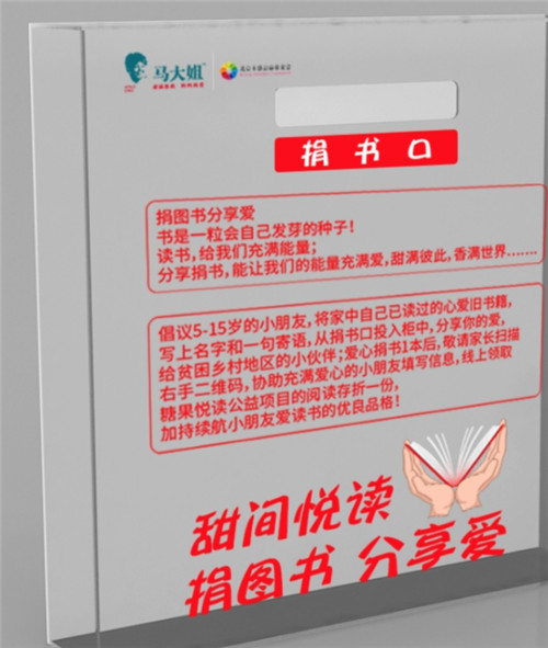 書籍是人類進步的階梯,少兒閱讀是民族的希望之光。恰逢4月23世界讀書日,馬大姐食品與北京豐盛公益基金會共同發起“甜間閱讀—捐圖書 分享愛”活動,鼓勵城市孩子到馬大姐線下門店為鄉村小伙伴捐出自己讀過的心愛舊書,并能夠換取愛心能量禮包和悅讀存折一份。