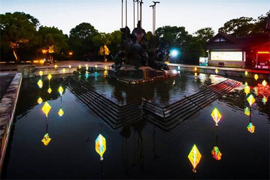 攜程與夜空彩虹的此次合作,離不開策劃團隊對紹興水鄉文化的深度思考,和對柯巖景區人文地貌的深入研究。在鑒湖景區,策劃團隊結合“魯迅文化”主題及紹興當地著名地標建筑,打造鑒湖燈光卷軸長廊。