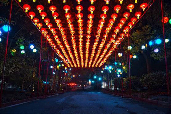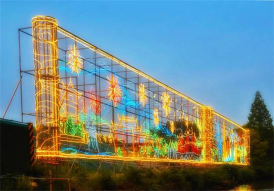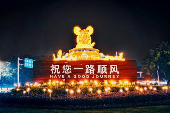 紹興柯巖風景區景區始于漢代,距今已有一千八百多年歷史,以古越文化為內涵,古采石遺景為特色,融紹興水鄉風情、古采石遺景、山林生態于一體的風景名勝區。景區入口環島處花圃,用炫彩銀線球燈點綴,與花圃中心的金鼠燈飾形成呼應,營造金鼠賀歲的喜慶氛圍。讓游客駛入景區時,感受濃濃的節日氣氛。