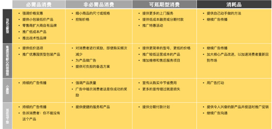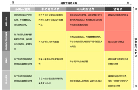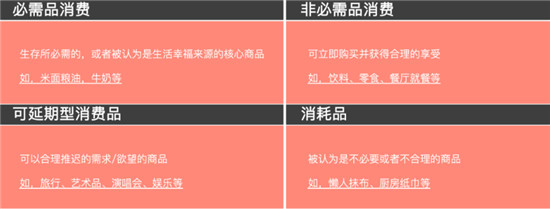 在整個經濟衰退時期,所有消費者通常都會重新評估其消費優先級,可以將產品和服務分為四類: