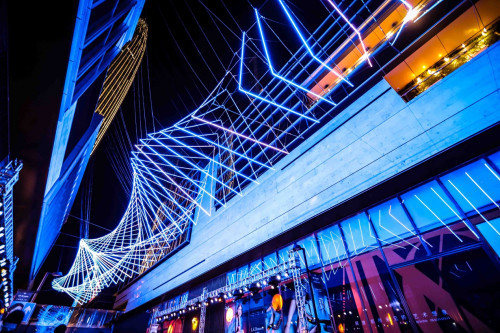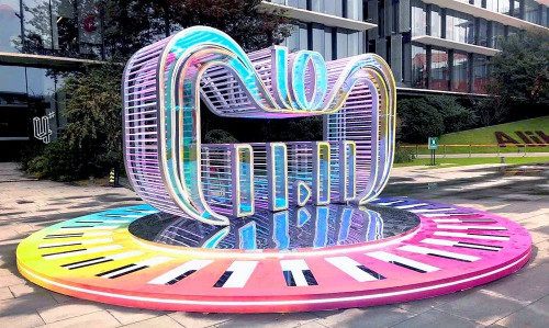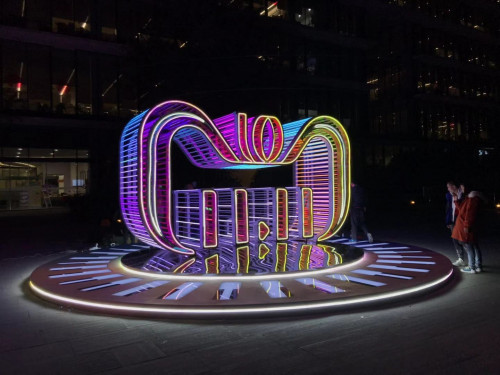 位于杭州阿里巴巴總部西溪園區的燈光互動裝置,通過客戶為阿里巴巴2018天貓雙十一進行創意造型設計,并由夜空彩虹制作施工。
