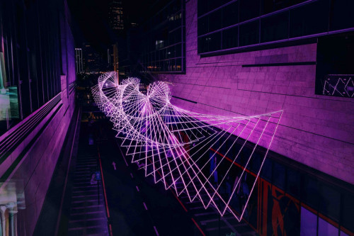 那么,當燈光藝術 與新媒體互動裝置 有機結合起來,又會給我們帶來怎樣美妙的視覺享受和震撼呢?本周我們圍繞以下幾個燈光新媒體裝置,向大家展示夜空彩虹新媒體藝術燈光的融合與創新。
