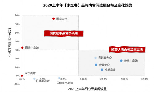 從大眾、中高端和高奢三個細分品類來看,歐美大牌雖占據著流量高地,但國貨中高端和國貨大眾品牌上增速亮眼,國貨大眾品牌有迎來爆發增長的趨勢。