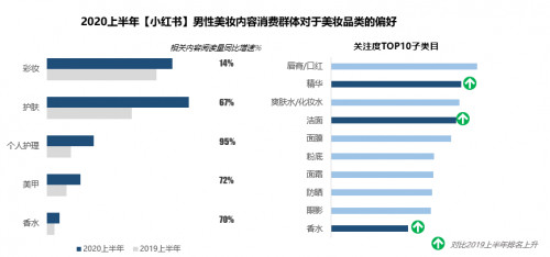 從性別來看,小紅書上男性對美妝內容的消費量同比增長46%,25歲左右、在一線和新一線城市的男性是美妝人群主力軍。從對內容的偏好來說,男性的偏好以護膚為主,今年上半年對護膚的關注漲幅達67%,而個人護理增速更加明顯。一些男士護膚品牌如雅詩蘭黛集團的LAB SERIES等也更加關注在小紅書的運營。