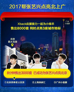 其實美國紳士去年才初入中國市場,自帶好口碑的他算是先行一步。針對春節年貨,美國紳士對產品進行了精確定位,再度攜自家代言人張藝興,玩轉天貓聚劃算大牌精選日活動,利用一次高品質的聚劃算團購,向張藝興的粉絲發起應援邀請,聚集粉絲力量,大搞熱點事件“張藝興17點亮北上廣”。