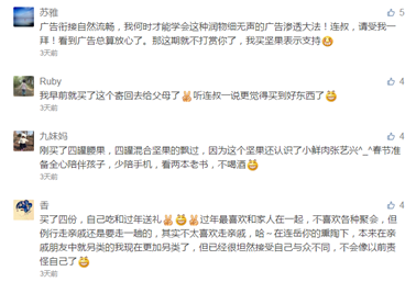 軟文有新意的如公眾號毒舌電影,以年度十大美劇為話題切入,文末將不同風格的美劇搭配上對應口味的美國紳士堅果,“看《罪夜之奔》《美罪》這種暗黑劇,不搭配墨西哥辣味,怎么夠刺激”。堅果與“電影界”的跨界合作竟能如此清新不做作,新奇有趣得不禁讓人大喊服氣!當然了,各大KOL的文章評論里也是一派喜慶,粉絲贊賞軟文的同時也不忘買上幾罐堅果,紛紛對美國紳士路轉粉。