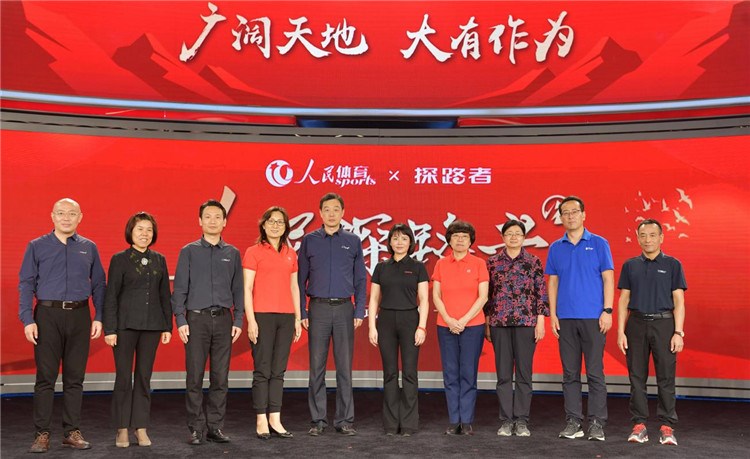 在隨后的啟動儀式環節中,“人民探路者”計劃的發起方代表人民體育董事長朱凱、探路者董事長王靜,與張世平、薛原、孫海峰、陳雙、彭元、蔣中富、何振紅、曲向東等領導與嘉賓共同啟動了“人民探路者”計劃。