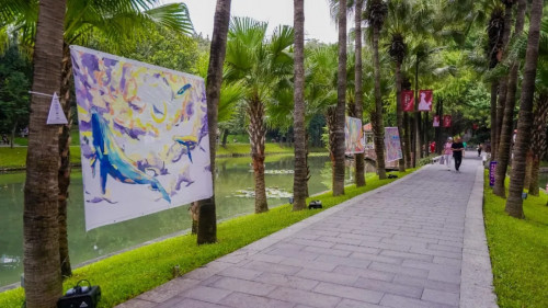 區別于傳統的光影秀,此次光影秀是越秀公園聯合夜空彩虹所作的一次光影與藝術的結合探索,讓美在不同的藝術媒介中進行轉化。近20位藝術家通過雕塑、插畫、水墨、新媒體等多種形式與光材料進行結合,構建了一個光藝術的世界,大型雕塑藝術作品也走出美術館,在公園里與游客親密接觸。