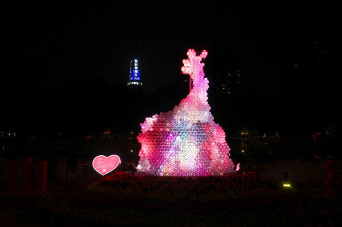據悉,此次光影大秀越秀公園、夜空彩虹聯合近20位藝術家通過雕塑、插畫、水墨、新媒體等多種形式與光材料進行結合,構建了一個光藝術的世界,大型雕塑藝術作品也走出美術館,在公園里與游客親密接觸。