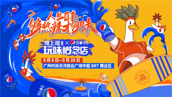 今年9月,老字號醬鹵品牌煌上煌攜手國際潮牌百事可樂聯合打造“玩味概念店”,這組“飲+食”CP在廣州掀起了一陣“新勢力”的熱潮。